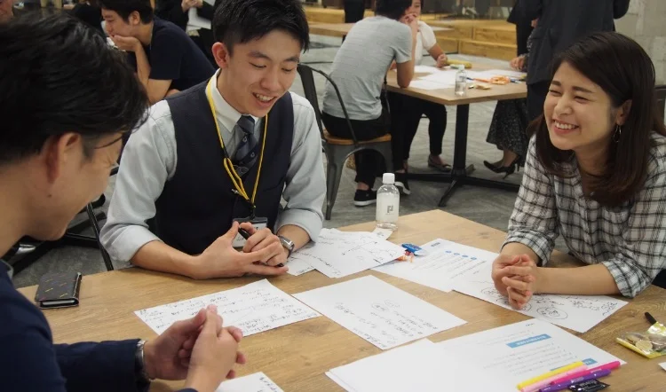 - 異なる視座、視点での意見が出るように、①内定者、②社員(管理職)、③社員(若手社員)の3人1グループとした